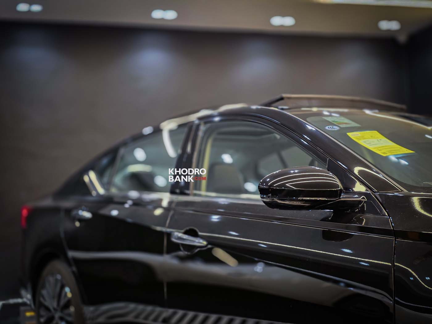 • نمای جانبی: در این نما، آلتیما شخصیت واقعی خود را به عنوان یک سدان بزرگ و کشیده به رخ میکشد. خط سقف با شیبی ملایم به سمت عقب حرکت میکند و به لطف یک ترفند طراحی هوشمندانه (مشکی کردن بخشی از ستون C)، حالتی شبیه به “سقف شناور” (Floating Roof) ایجاد میکند که به پویایی خودرو افزوده است. یک خط شانه برجسته که از بالای گلگیر جلو آغاز شده و تا چراغ عقب امtadad مییابد، به بدنه حجم داده و آن را از سادگی درآورده است. رینگهای ۱۷ اینچی آلومینیومی طراحی مناسبی دارند، اما شاید برای پر کردن کامل گلگیرهای این سدان بزرگ، سایز ۱۸ اینچ میتوانست انتخاب بهتری باشد.